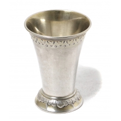 Высота: 5 см, диаметр верха: 4,2 см. Объём: 40 мл. Вес: 46 грамм серебра 830 пробы. ================================= Silver vodka cup (shot cup).