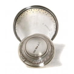 Height: 10.5 cm, diameter of the top : 6.8 cm. Volume: 60 ml. Total weight: 208 grams of silver 830 fineness.