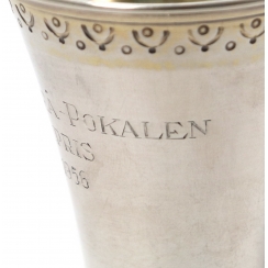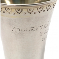 С гравировкой " Кубок Соллефтео, 2 приз 1956". ============================== Silver vodka cup (shot cup) in the form of a goblet.