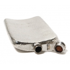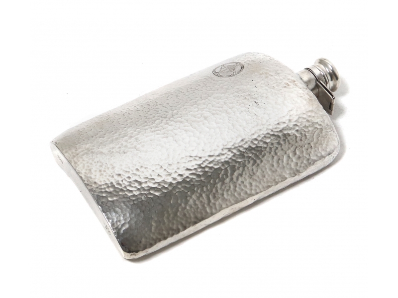 Максимальные размеры: 17 х 10 х 1,5 см. Объём: 240 мл. Вес: 218 граммов серебра 925 пробы. ============================= Sterling silver pocket hip flask (whiskey bottle). Forging.
