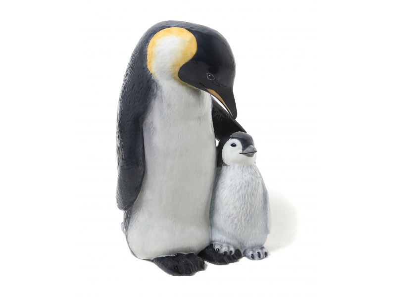 Фарфоровая фигура (статуэтка) "Пингвин с детенышем" из серии "Материнская любовь". Ручная подглазурная роспись.