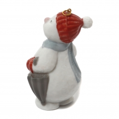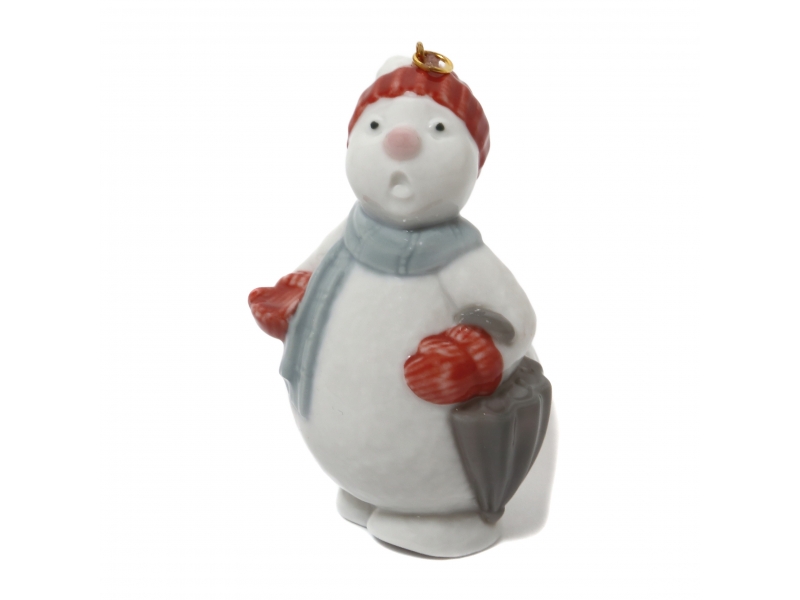 244490 - Елочная игрушка Снеговик с зонтом, высота 7,2 см, длина 4,5 см, ширина 4 см, Испания, NAO by Lladro