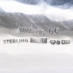Height: 4.7 cm, diameter of the top: 5.5 cm. Volume: 60 ml. Weight: 91 grams of sterling silver 925 fineness.
