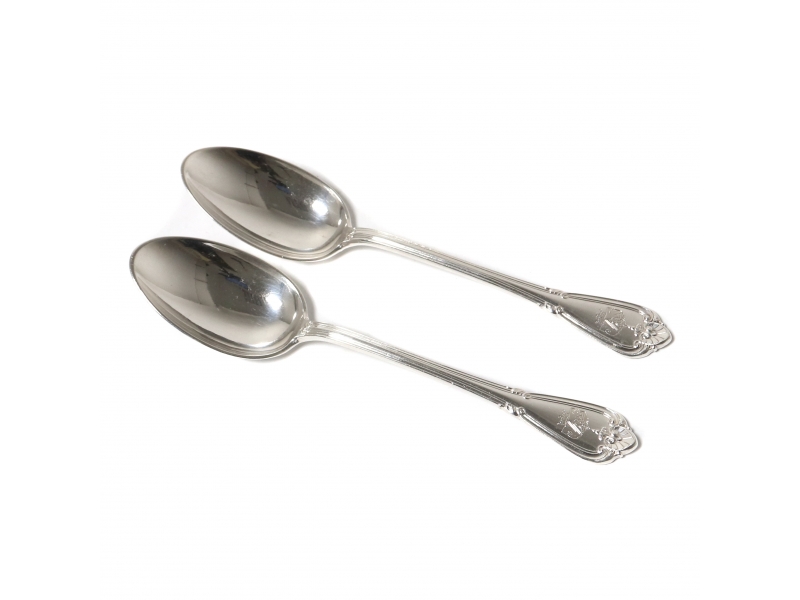 Небольшие массивные серебряные обеденные ложки, 2 шт. Дизайн "Greque" (Греческий).