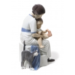 Статуэтка второго сорта. Без сколов, повреждений и без реставраций. ==================================== Porcelain figurine "Mother with baby and cat ". Hand-painted underglaze.