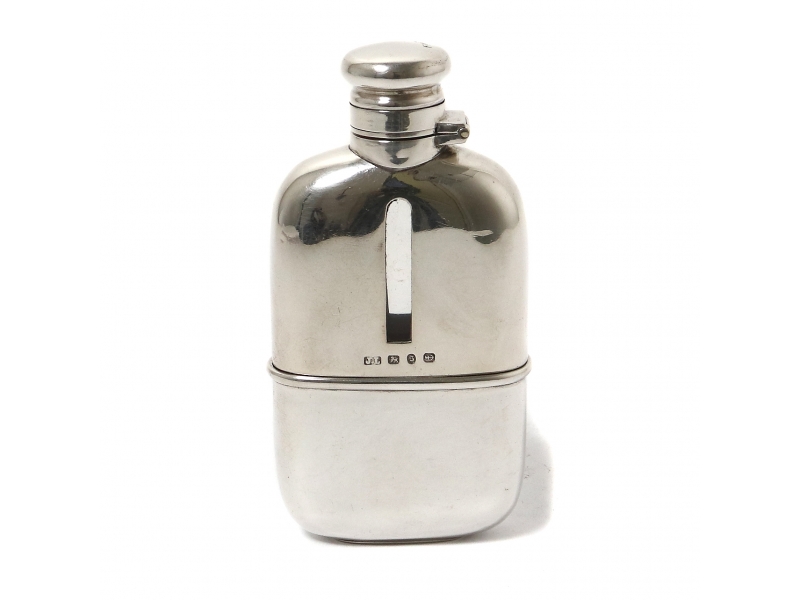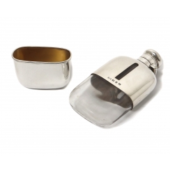 Общий вес: 190 граммов серебра 925 пробы. ============================= Pocket hip flask (whiskey bottle) with removable beaker (cup). Glass, sterling silver of 925 fineness.