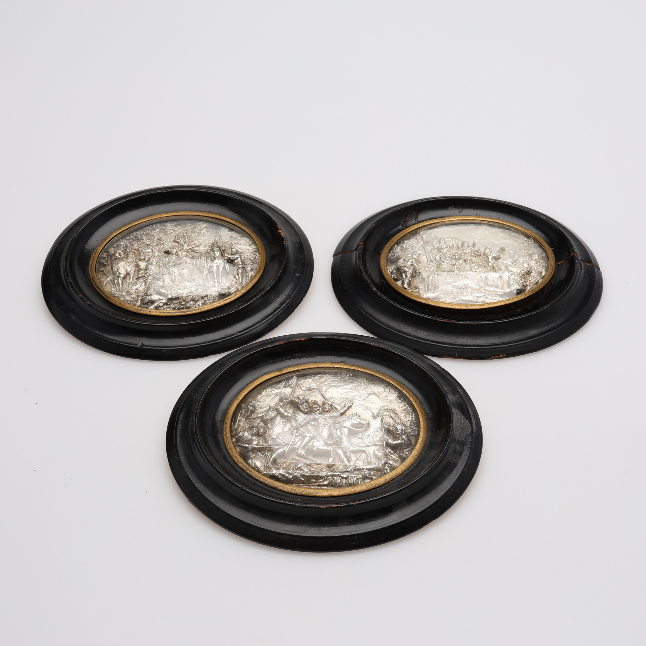 Три горельефные миниатюры, размеры изображений 9,3 х 7,5 см, размеры рамок 15,8 х 13,5 см