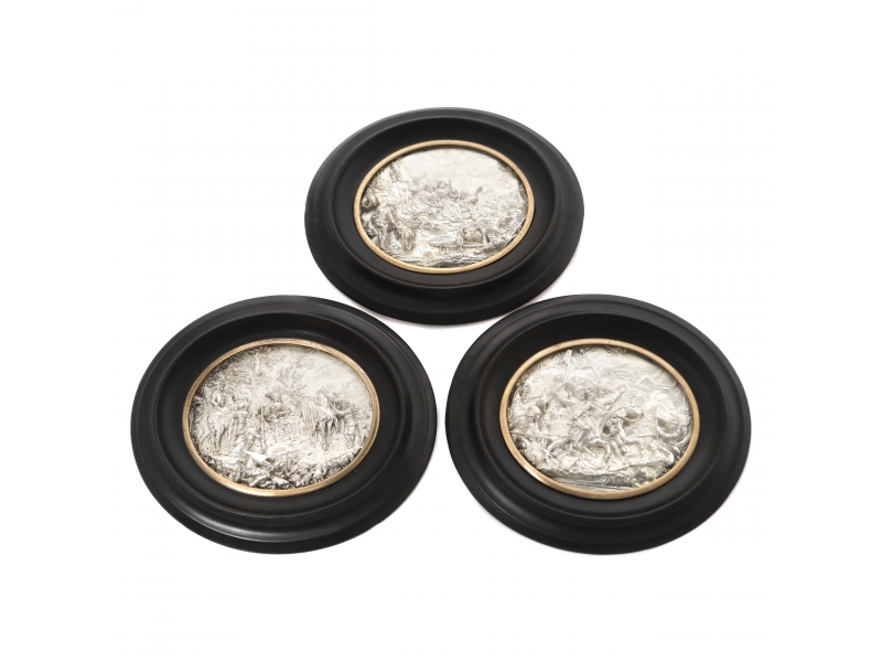 Три горельефные миниатюры из высокопробного серебра.