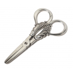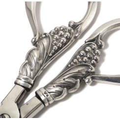 Ножницы для винограда с серебряными ручками и стальными лезвиями. Ручки декорированы гроздьями винограда.