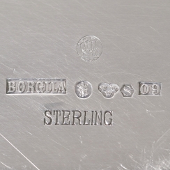 Диаметр: 27 см, высота: 1,7 см. Общий вес: 4098 граммов серебра 925 пробы. ============================= Silver plates, 6 pcs.