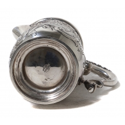 На носике пайка. ============================ Silver creamer (milk jug), decorated with floral pattern.