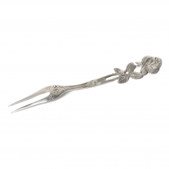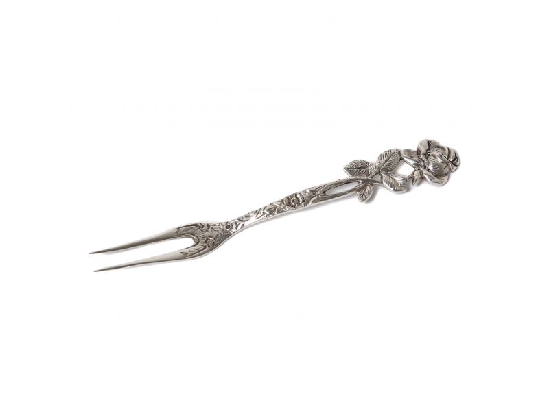 Длина: 14 см. Вес: 18 граммов серебра 800 пробы. ================================ Silver serving fork. Pattern "Rose of Hildesheim".