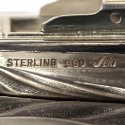 Model dimensions: height 14.4 cm, length: 12.7 cm. Size of the silver-plated stand: 15.5 x 7.8 cm. Showcase dimensions: 23.2 x 20.2 x12.6 cm.