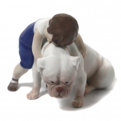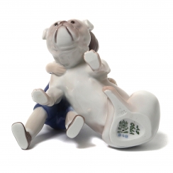 Фигура производилась также после объединения фабрик Royal Copenhagen и Bing & Grondahl (1985-1989) под брендом Royal Copenhagen, номер модели: 427. ============================== Porcelain figurine "Two Friends" (Child with dog). Hand-painted underglaze.