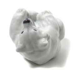Фарфоровая фигура (статуэтка) "Белый медведь, лежащий на спине". Ручная подглазурная роспись.