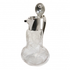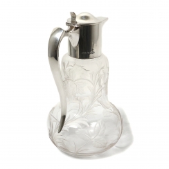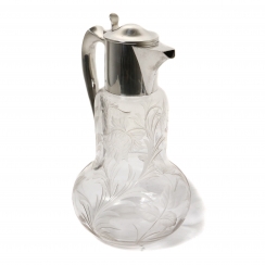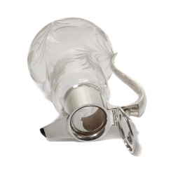 Кувшин. Стекло, серебро 925 пробы. Стеклянный корпус кувшина украшен матовым растительным орнаментом.