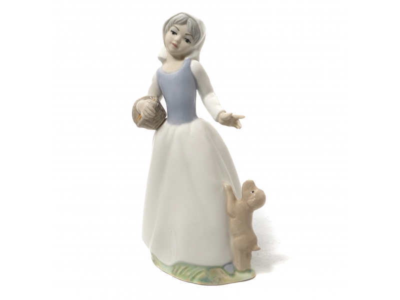 242073 - Фарфоровая фигура "Девочка и щенок". TengraФарфоровая фигура (статуэтка) "Девочка с корзинкой и щенок". Ручная подглазурная роспись.