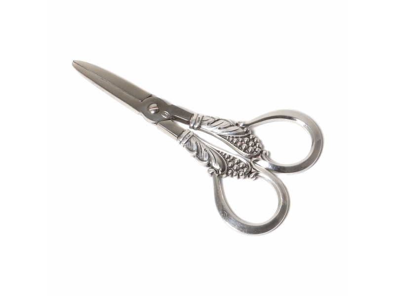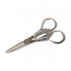 Ножницы для винограда с серебряными ручками и стальными лезвиями. Ручки декорированы гроздьями винограда.