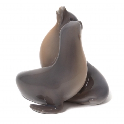 Фарфоровая фигура (статуэтка) "Морские львы". Ручная подглазурная роспись.