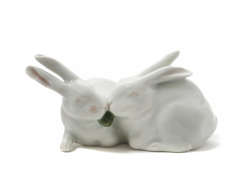 Фарфоровая фигура (статуэтка) "Пара кроликов". Ручная подглазурная роспись.