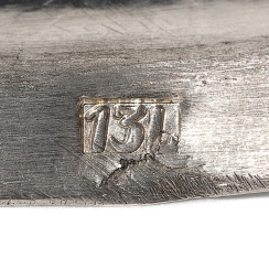 Общий вес без вставки: 147 граммов серебра 13 лотов ( = 812 метрической пробе).