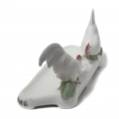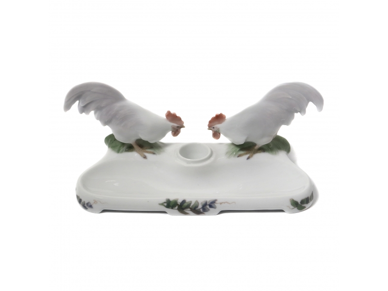 Статуэтка первого сорта. Без сколов, повреждений и без реставраций. ======================================= Porcelain stand for inkwells and pens, decorated with two figures of cocks. Hand-painted underglaze.