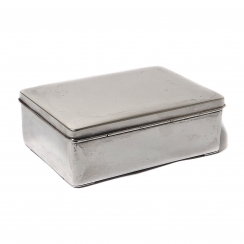 Мелкая вмятинка на крышке. ==================================== Silver box (casket) with wooden bottom and interior wooden trim.