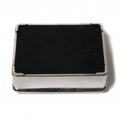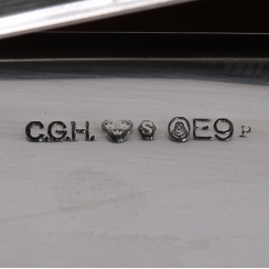 Длина: 13 см, ширина: 9 см, высота: 4,8 см. Общий вес, включая не серебряные части: 330 граммов, серебро 830 пробы.
