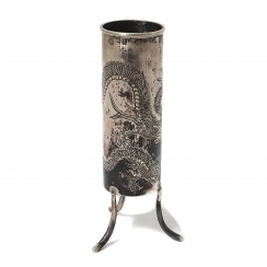 Вазочка в патине; на ножках пайка, на одной из них - трещинка. =============================== Silver vase, decorated with niello drawing of a dragon.