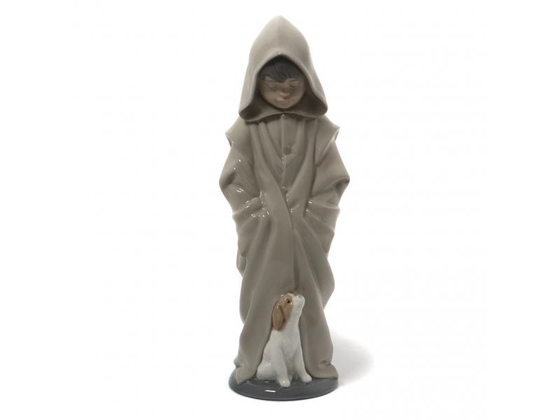 Фарфоровая фигура (статуэтка) "Мальчик в капюшоне с собакой". Ручная подглазурная роспись.