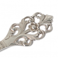 ![]() 254153 - Серебряный стакан в виде кубка. Швеция, 1939 год.Серебряный стакан в виде кубка, ковка.Швеция, г. Стокгольм, 1939 год, мастерская GAB. "GAB" - клеймо крупнейшей гильдии ювелирных мастеров Швеции GuldsmedsAktieBolaget, основанной в 1868 году. В составе компаний K.A. Rasmussen Group по сей день является ведущим производителем изделий из серебра. Высота: 12 см, диаметр верха: 9,5 см. Объём: 200 мл. Вес: 123 грамма серебра 830 пробы. С гравировкой. ============================== Silver beaker in the form of a goblet, forging. Sweden, Stockholm, year 1939, workshop GAB. "GAB" is the hallmark of the largest guild of jewelers in Sweden, GuldsmedsAktieBolaget, founded in 1868. As part of the companies K.A. The Rasmussen Group is still a leading manufacturer of silver. Height: 12 cm, diameter the of top: 9.5 cm. Volume: 200 ml. Weight: 123 grams of silver 830 fineness. There is engraving "Hederspris 1939" ![]() 285900 - Серебряная сервировочная ложка. НорвегияСеребряная сервировочная ложка.Дизайн "Роза викингов" (Viking Rose). Норвегия, г.Тёнсберг, мастерская Thorvald Marthinsen Solvvarefabrikk (основана в 1883 году). Номер модели: 318. Ввезена в Швецию. Государственное пробирное клеймо Швеции для ввезенных серебряных изделий. Длина: 12,7 см. Вес: 17 граммов серебра 830 пробы. ========================= Silver serving spoon. Pattern "Viking Rose". Norway, Tønsberg, workshop Thorvald Marthinsen Solvvarefabrikk (founded in 1883). Model: 318. Was imported to Sweden. Length: 12.7 cm. Weight: 17 grams of silver 830 fineness. ![]() 211726 - Серебряные кондитерские щипцы. |