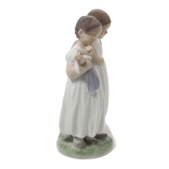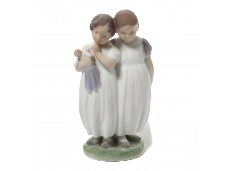 Фарфоровая фигура (статуэтка) "Девочки с куклой". Ручная подглазурная роспись.