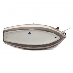Длина лодки: 39,5 см, ширина: 15,3 см. Максимальная высота фигуры: 20 см. Размеры деревянной подставки: 35 х 13 х 2 см.