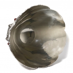 Серебряная ваза на ножке со вставками из кораллового кабошона.