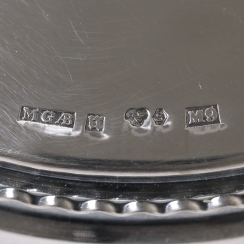 Height: 18.5 cm, base diameter: 8.3 cm, candle diameter: 3.2 cm. Total weight with weighting element: 343 grams, silver of 830 fineness.