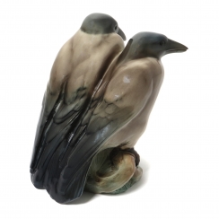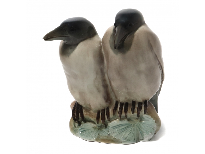 Фарфоровая фигура (статуэтка) "Пара ворон на ветке". Ручная подглазурная роспись.