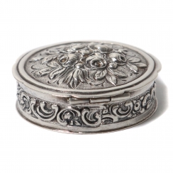 295258 - Серебряная таблетница. ГерманияСеребряная таблетница, декорирована рельефным цветочным узором.