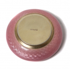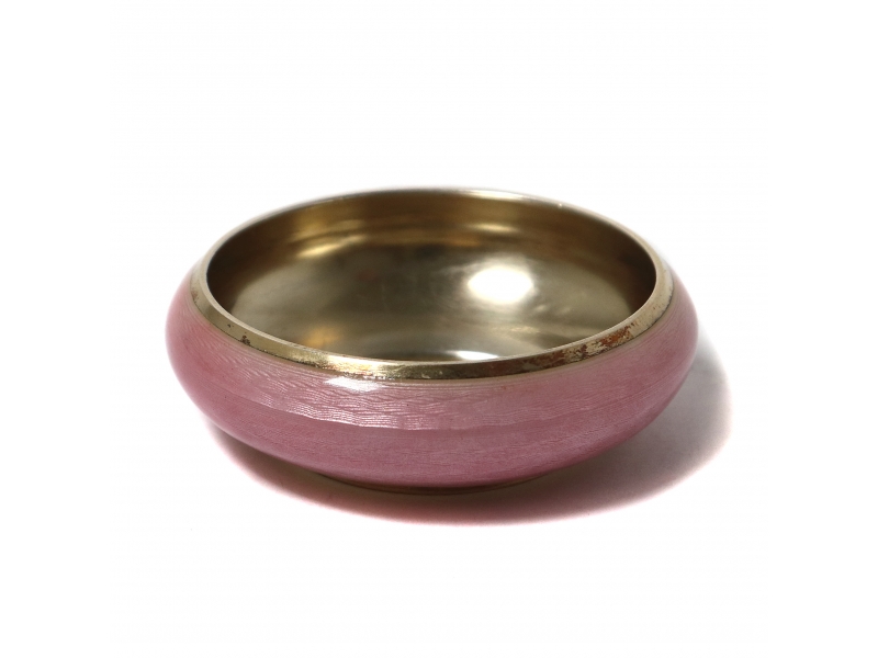 250593 - Солонка. Серебро, позолота, эмаль (розовая). Вес 49 гр, 925 пр, высота 2 см, диаметр верха 5,2 см