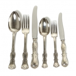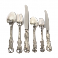 Набор небольших серебряных столовых приборов на 6 персон, 36 предметов. Дизайн "Принц Альберт" (Prince Albert).