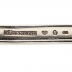 «Möllenborg» - клеймо с фамилией владельца мастерской Gustaf Möllenborg (годы жизни: 1796-1851); мастерская работала с 1823 по 1932 гг.