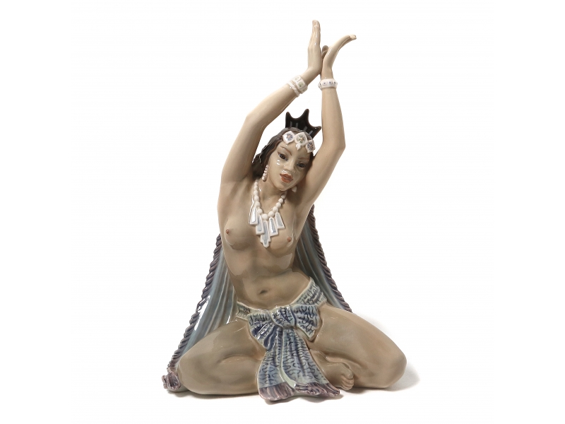 Статуэтка второго сорта. Без сколов, повреждений и без реставраций. ============================= A large porcelain figurine "Indian flame dancer". Hand-painted underglaze.