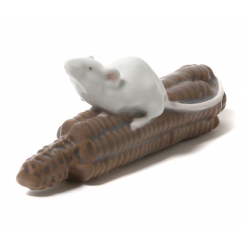 Фарфоровая фигура (статуэтка) "Мышь на кукурузном початке". Ручная подглазурная роспись.