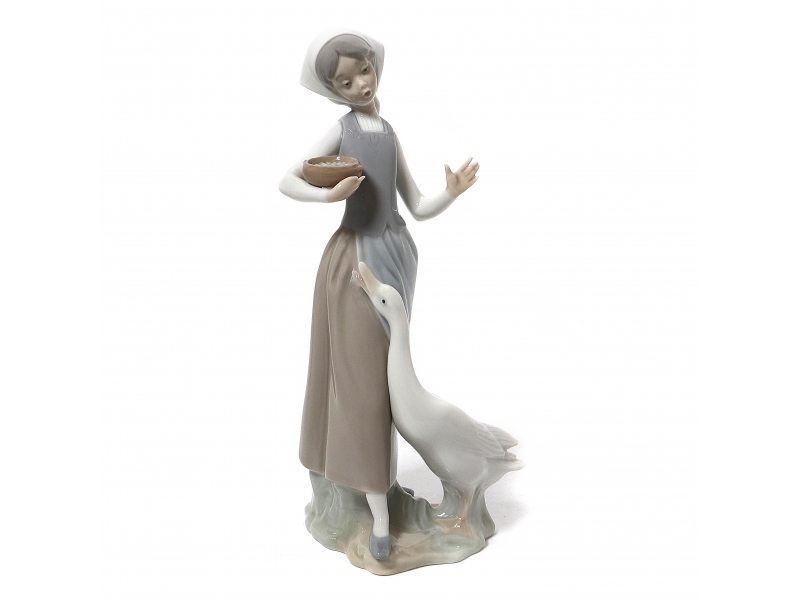 Мелкий скол на кончике левого крыла. ============================= Porcelain figurine "Girl with duck". Hand-painted underglaze.