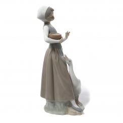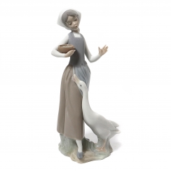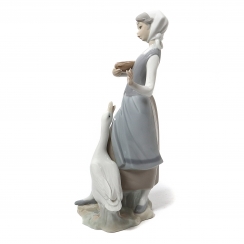 Фарфоровая фигура (статуэтка) "Девочка с гусем". Ручная подглазурная роспись.