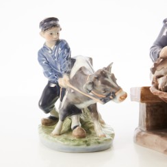 Фигура произведена после объединения фабрик Royal Copenhagen и Bing & Grondahl (1985-1989). До объединения, фигура выпускалась фабрикой Royal Copenhagen с номером модели 772. ============================ Porcelain figurine "Boy with calf". Hand-painted underglaze.