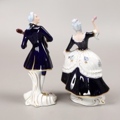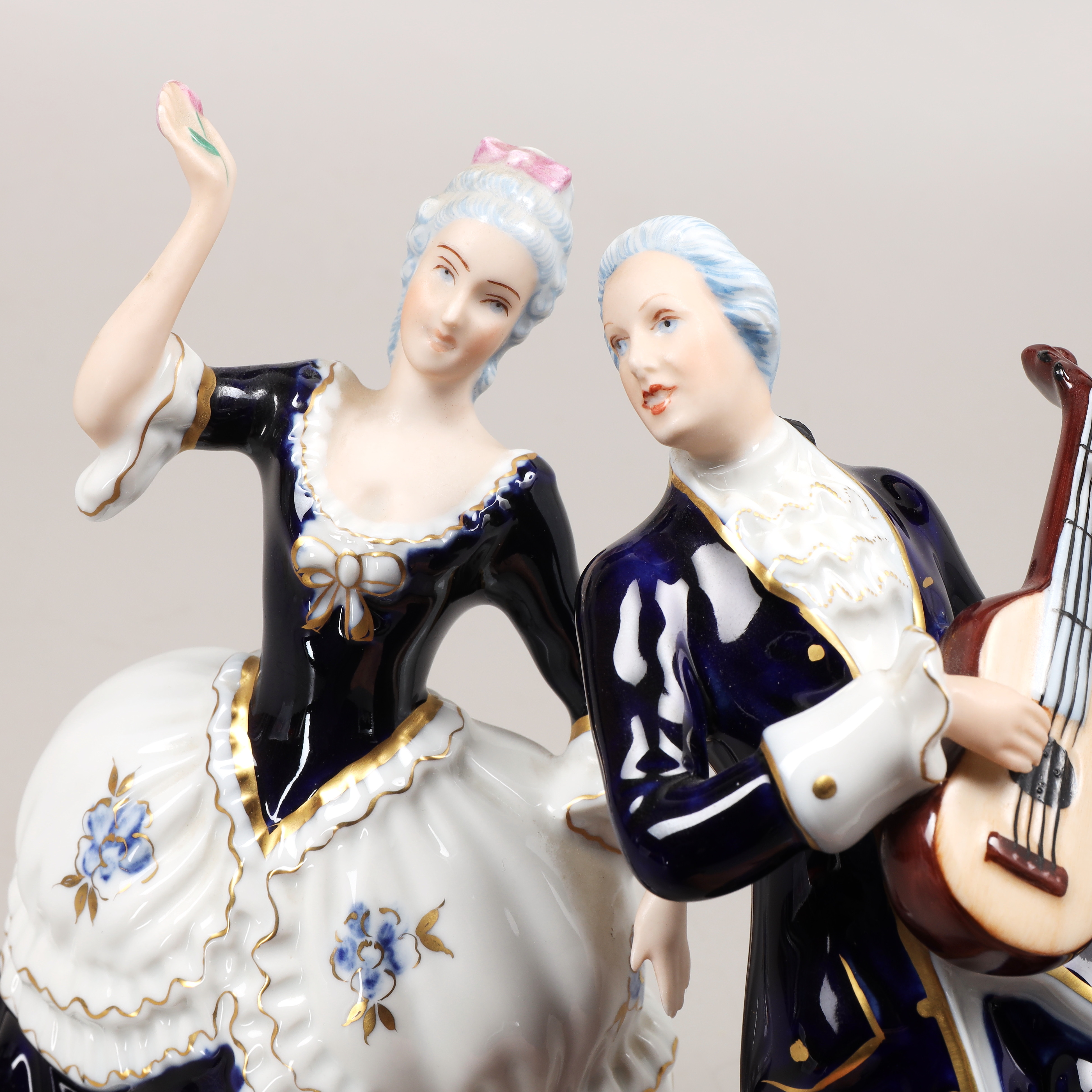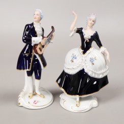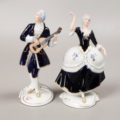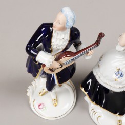 Две фарфоровые статуэтки: Кавалер с гитарой, RD_3728 и Танцующая дама с цветком в руке, RD_3727