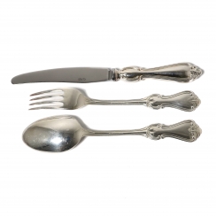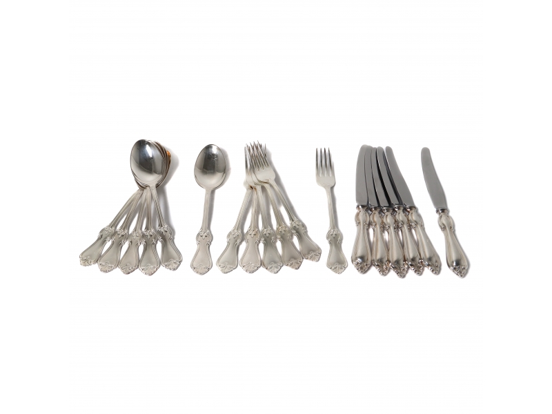 Набор небольших посеребренных столовых приборов на 6 персон, 18 предметов. Дизайн "Ольга" (Olga).