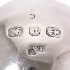 Ложка сделана в г. Бирмингем, 1894 год, мастерская Stokes & Ireland Ltd (годы работы: 1894-1895). Ввезена в Швецию. Государственное пробирное клеймо Швеции для ввезенных серебряных изделий.