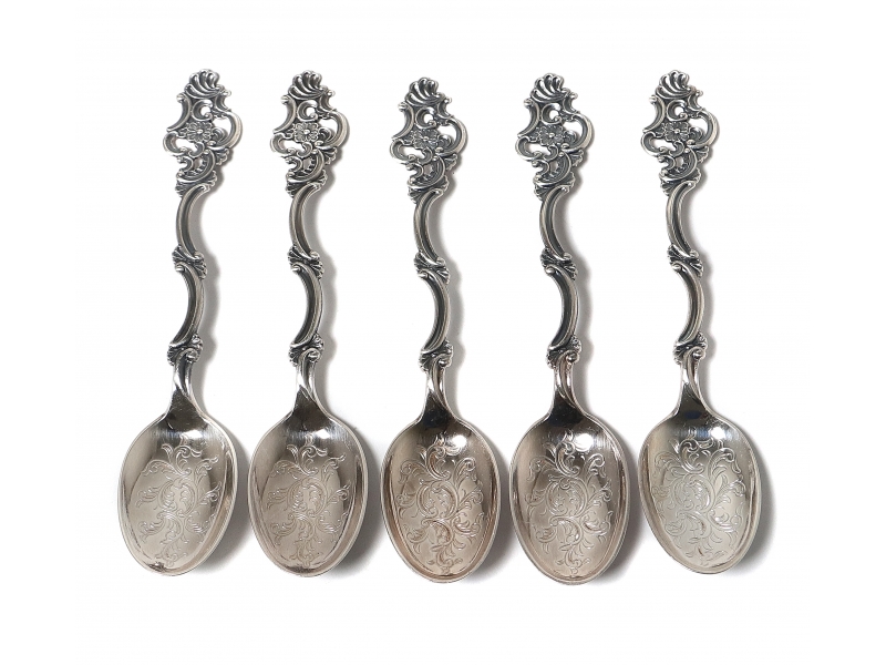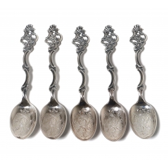 Небольшие серебряные чайные ложки, 5 шт. Дизайн "Grandmother (Oldemor)".