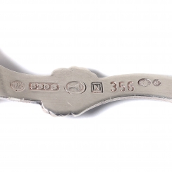 Норвегия, г. Тёнсберг, середина 20 века, мастерская Thorvald Marthinsen Solvvarefabrikk (основана в 1883 году). Номер модели: 356. Ввезены в Швецию. Государственное пробирное клеймо Швеции для ввезенных серебряных изделий.
